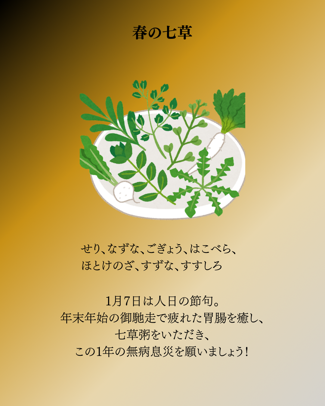 七草粥でリセットさせ、体を内側からと外側から温め、日本の美しい暦を愛でながらお健やかにお過ごし下さいませ🍀✨
