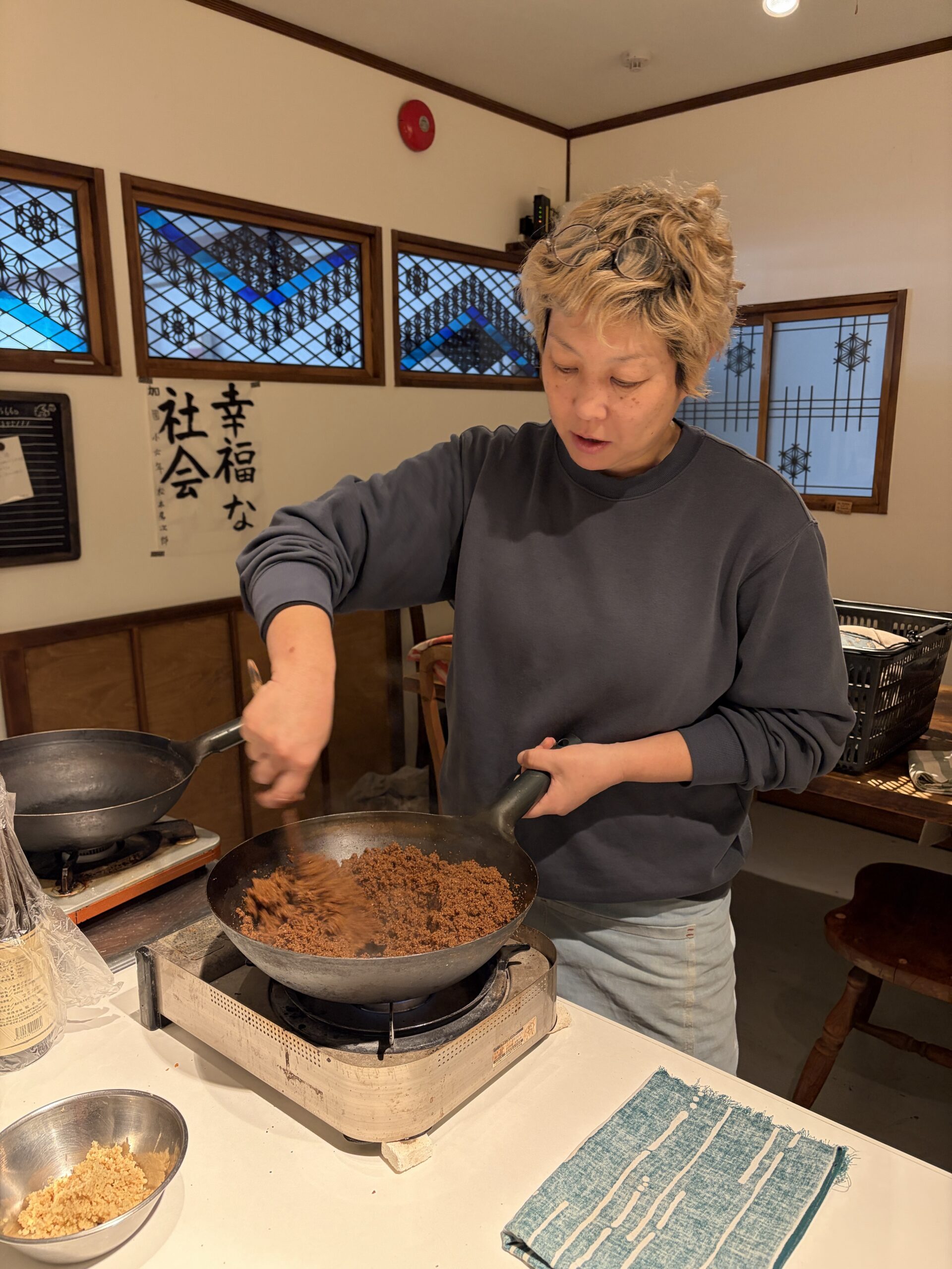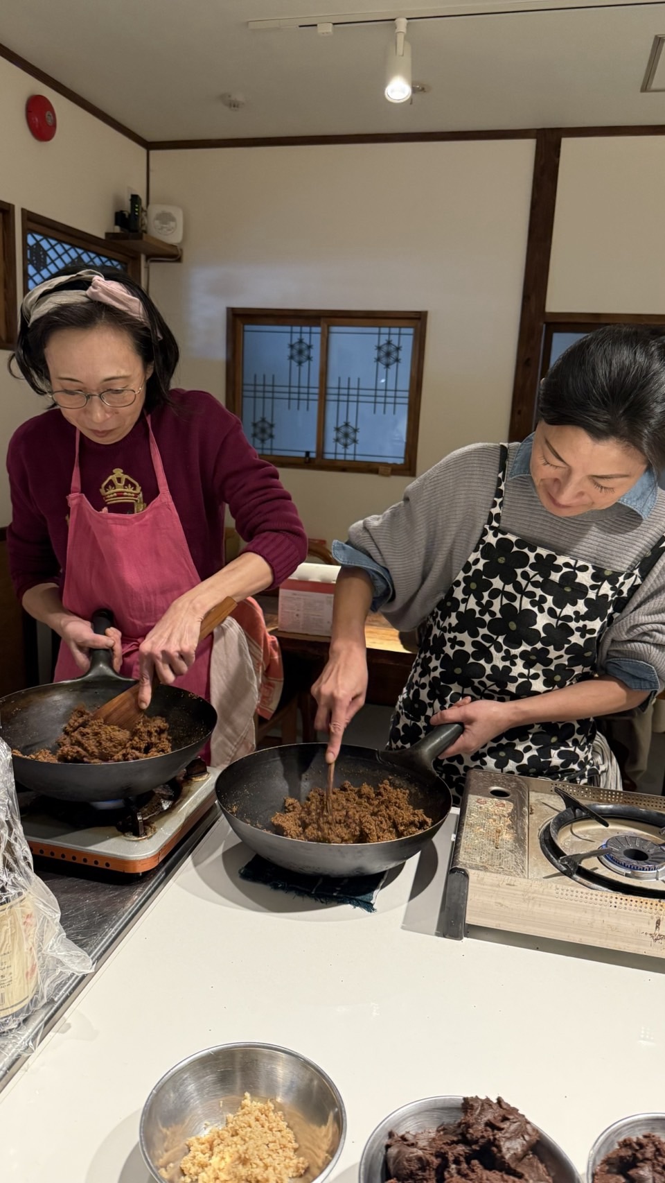 レミちゃん、晃枝ちゃん含め6名で手元は真剣にでも笑いありで大いに免疫力を上げながら楽しく鉄火味噌を作らせていただきました。
