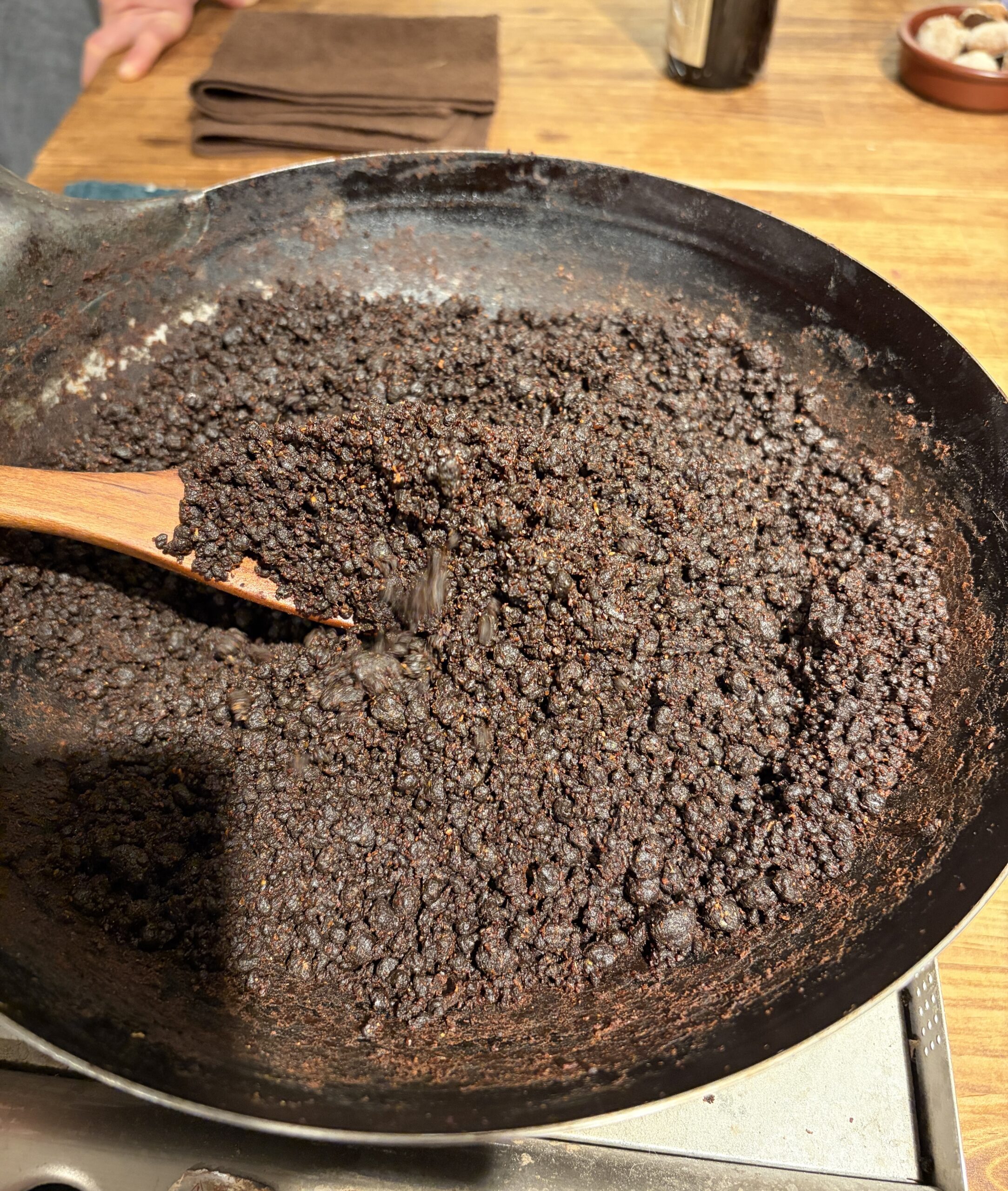 それを炒め、途中味噌を入れてさらに炒め続けること約3時間。