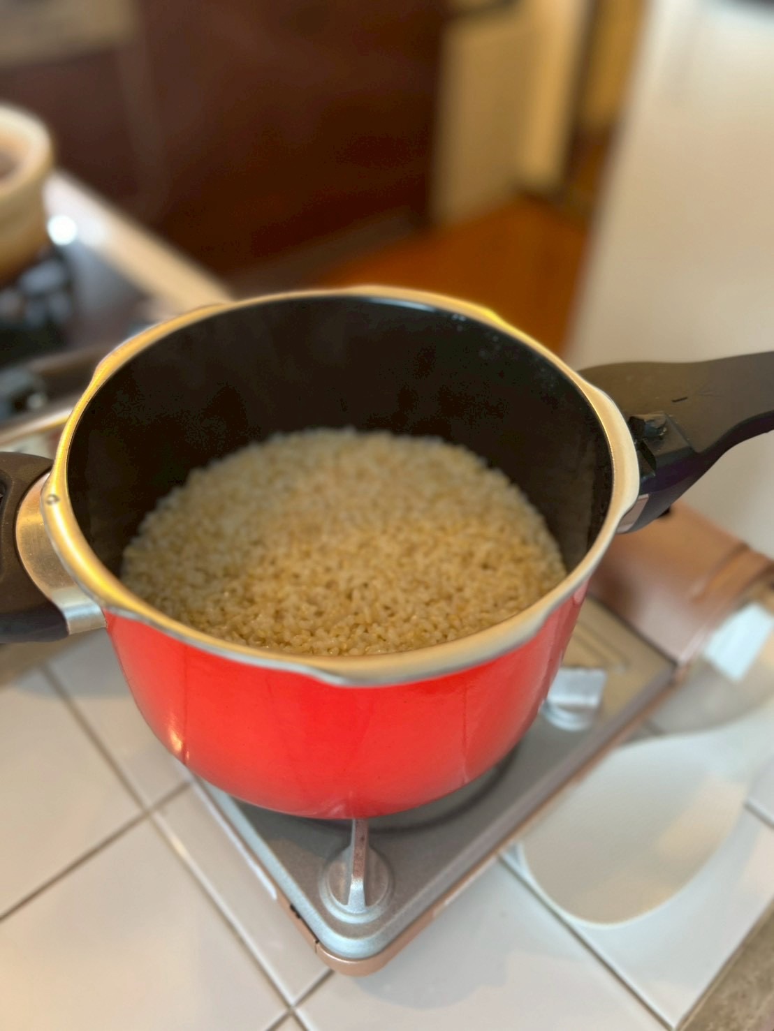 ◎玄米炊き比べ(圧力鍋と土鍋)