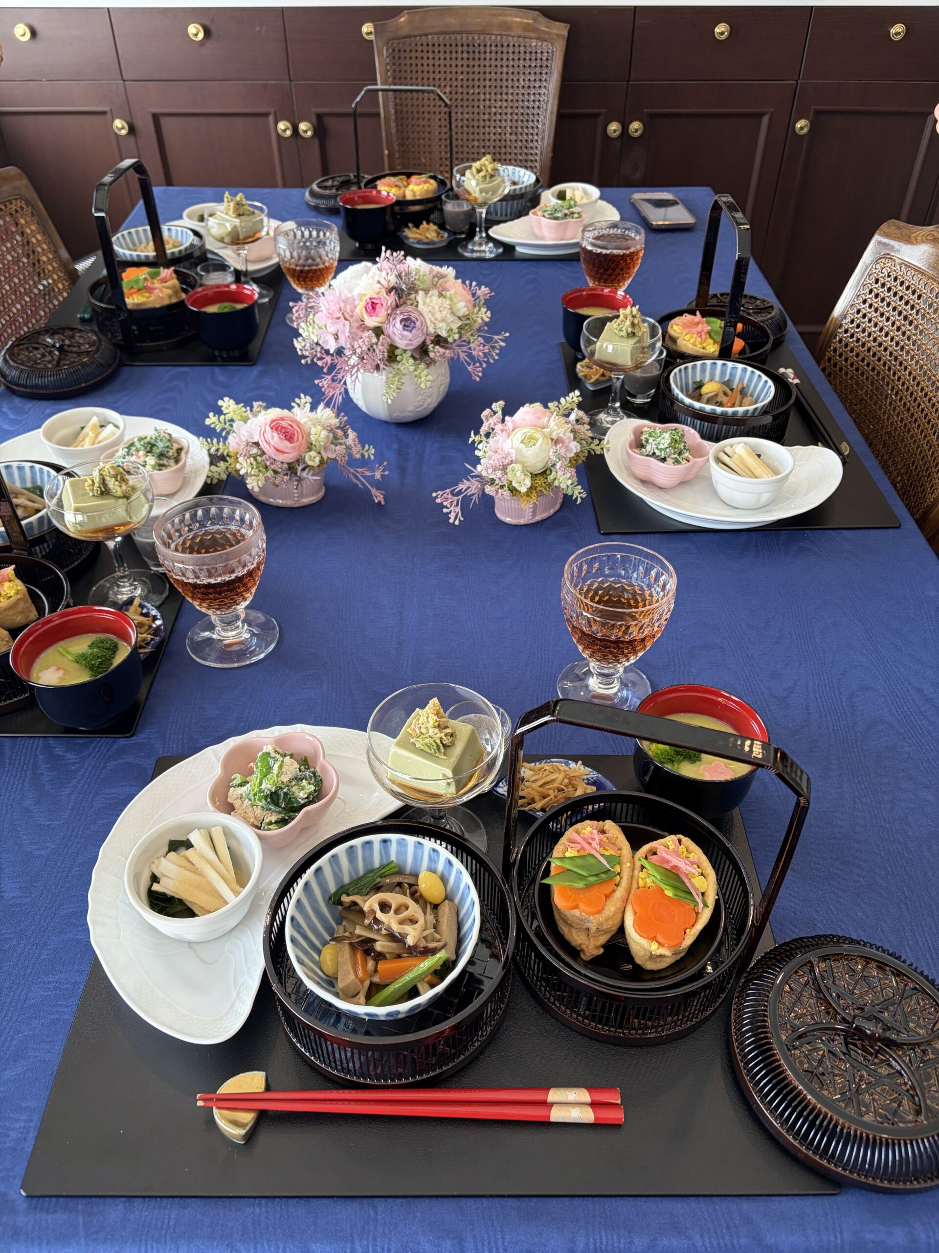 久しぶりに2段の竹の塗りかごも登場。